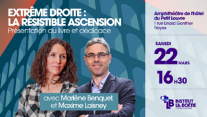 Les Jeunes Insoumis de l’Aube ont organisé une présentation publique du premier libre de l’Institut La Boétie au Petit Louvre, Une petite présentation ci-dessous si ça vous dit… et n’oubliez pas qu’on peut covoiturer !